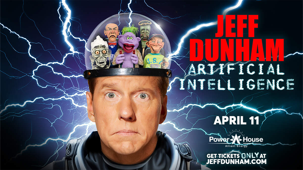 Legendary Comedian, Jeff Dunham, is bringing his “ARTIFICIAL INTELLIGENCE” tour to Alliant Energy PowerHouse on April 11th, 2025. Tickets go on-sale to the public on Monday, October 7th at 10:00 a.m. at creventslive.com, Ticketmaster.com & Jeffhunham.com.